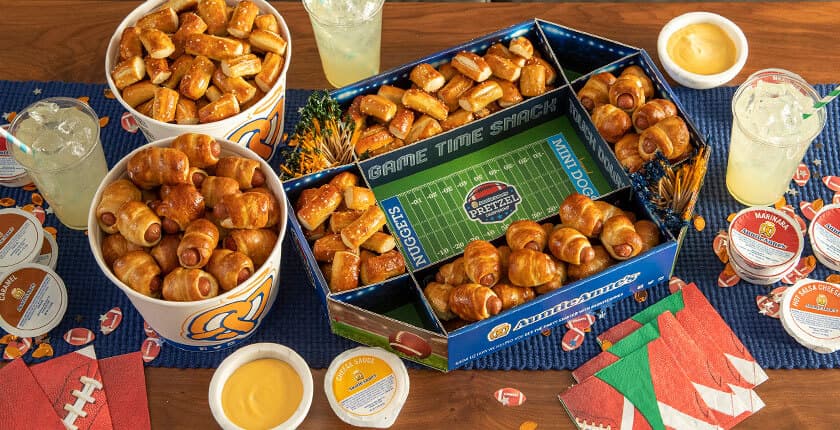 With fresh-baked Pretzel Buckets, dips, and a Snack Stadium display, your party is sure to win, even if your team doesn’t.