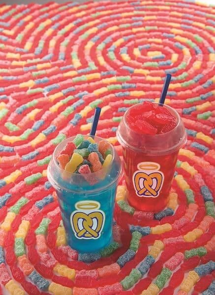 Calling all sweet tooths: today, Auntie Anne’s®, the world’s largest hand-rolled soft pretzel franchise, is introducing Candy Lemonade Mixers nationwide. The drink features flavored lemonade topped with SOUR PATCH KIDS or SWEDISH FISH soft and chewy candies.